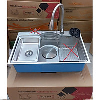 Chậu rửa chén bát 1 hố lớn dạng ĐÚC dày 3,5 li Valenza kiểu dáng Hàn Quốc inox 304 chuẩn 100% kèm chậu phụ inox304, bộ xả thoát to-Hàng chính hãng