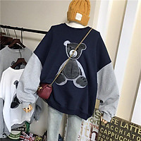50000 Áo Sweater Nỉ Hàn Quốc Nam Nữ Họa Tiết Gấu Tay Phối 2 Màu Dáng Rộng Cực Xinh