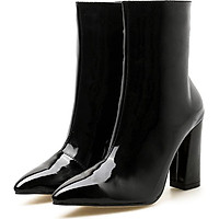 Boot lửng da bóng mũi vuông THỜI THƯỢNG GBN71