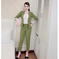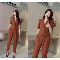 Sét nguyên bộ quần dài ống suông áo croptop cổ vest 2 nắp túi giả xinh xắn