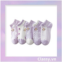 Tất cổ thấp, vớ cổ thấp Classy màu tím họa tiết ngẫu nhiên G1361