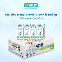 Sữa Tiệt Trùng Ít Đường VPMilk Grow+ Hộp 180ml (Thùng 48 Hộp)