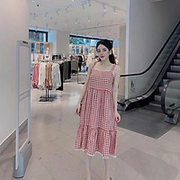 Váy bầu 2 dây cao cấpchất lụa hàn siêu mát, thấm hút mồ hôicam kết y hìnhfree size 43~68kg