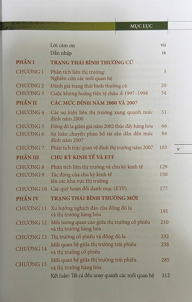 Cuốn sách đầu tiên của tôi về chủ đề này, có tựa Phân tích kỹ thuật liên thi trường: Chiến lược giao dịch cho các thị trường cổ phiếu, trái phiếu, hàng hóa và tiền tệ toàn cầu (NXB Wiley & Sons), xuất bản năm 1991. Lý do tôi viết cuốn sách đó là để chứng minh rằng tất cả các thị trường tài chính toàn cầu được liên kết chặt chẽ và tác động lẫn nhau. Luận điểm chính của cuốn sách là các nhà phân tích kỹ thuật cần mở rộng kiến giải về biểu đồ của họ để xem xét các mối quan hệ liên thị trường này. Chẳng hạn, bản thân việc phân tích thị trường cổ phiếu sẽ không đầy đủ nếu không tính đến các xu hướng hiện tại của đồng đô la, trái phiếu và các thị trường hàng hóa. Cuốn sách đầu tiên này gợi ý rằng các thị trường tài chính thường có thể được sử dụng như các chỉ báo hàng đầu về xu hướng trong các thị trường liên quan hoặc ít nhất có thể cung cấp một sự xác nhận (hoặc không xác nhận) của các xu hướng hiện có khác.