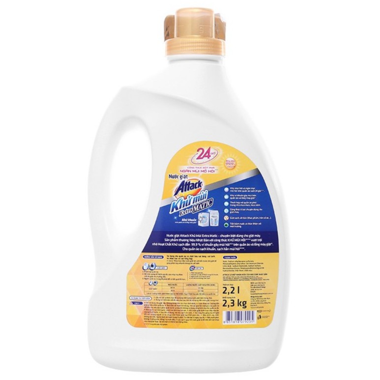 Giới thiệu Nước giặt Attack Extra Matic ngăn mùi mồ hôi chai 2.3kg