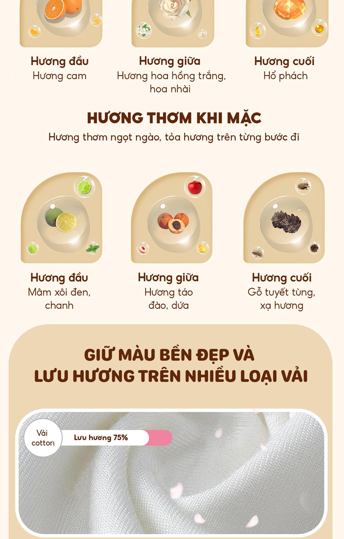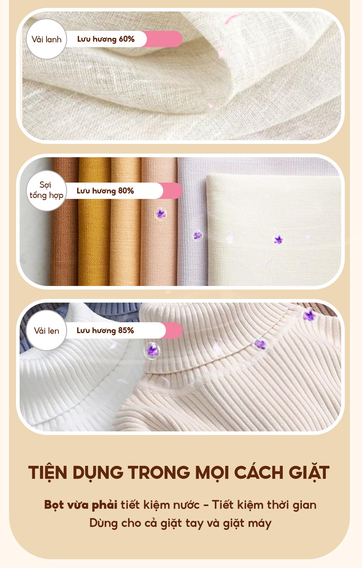 - Hương thơm ngát dài lâu đến tận lần giặt tiếp theo