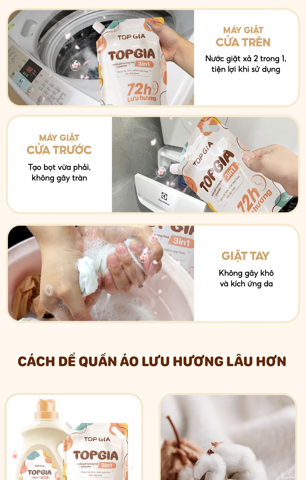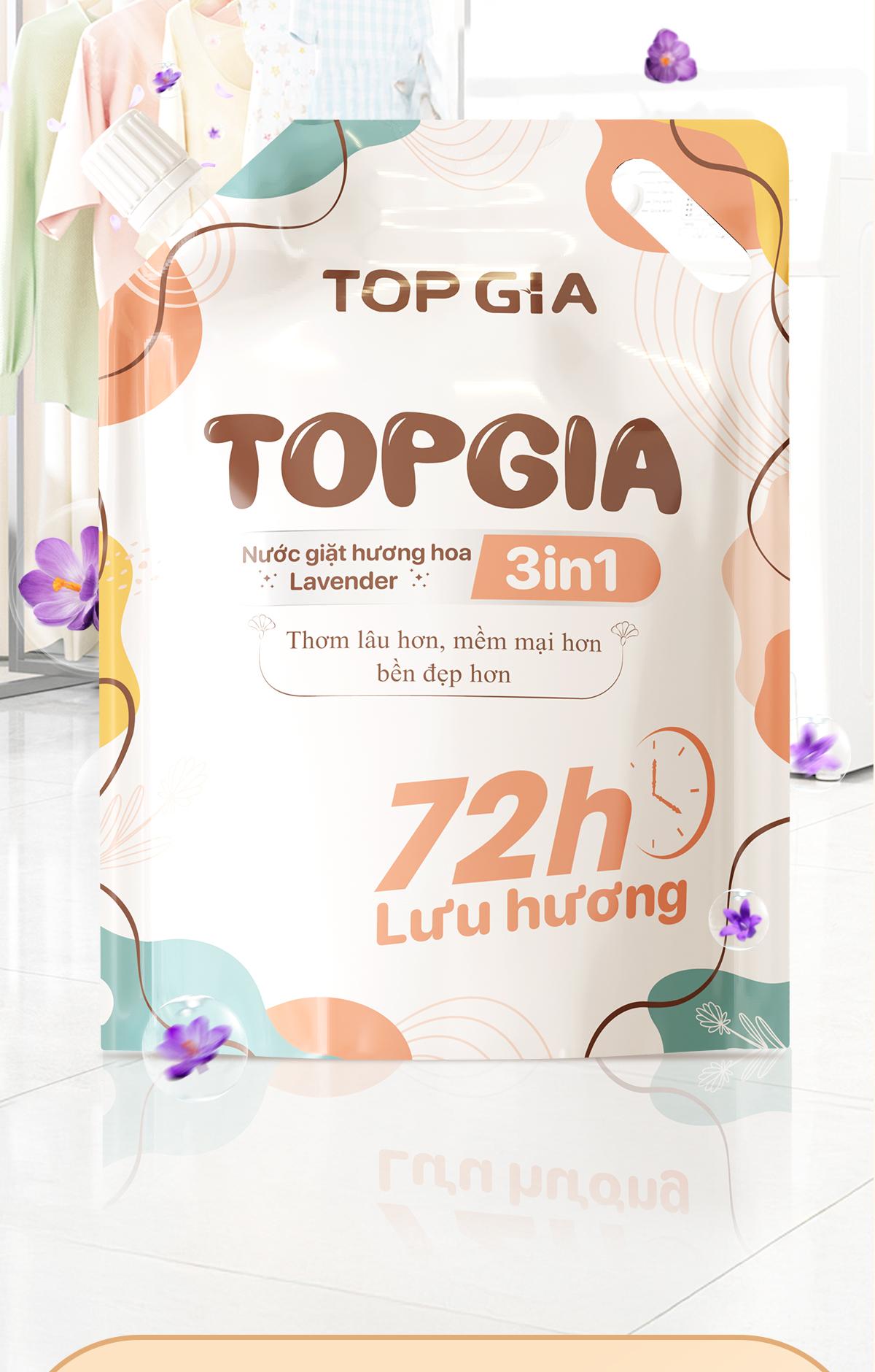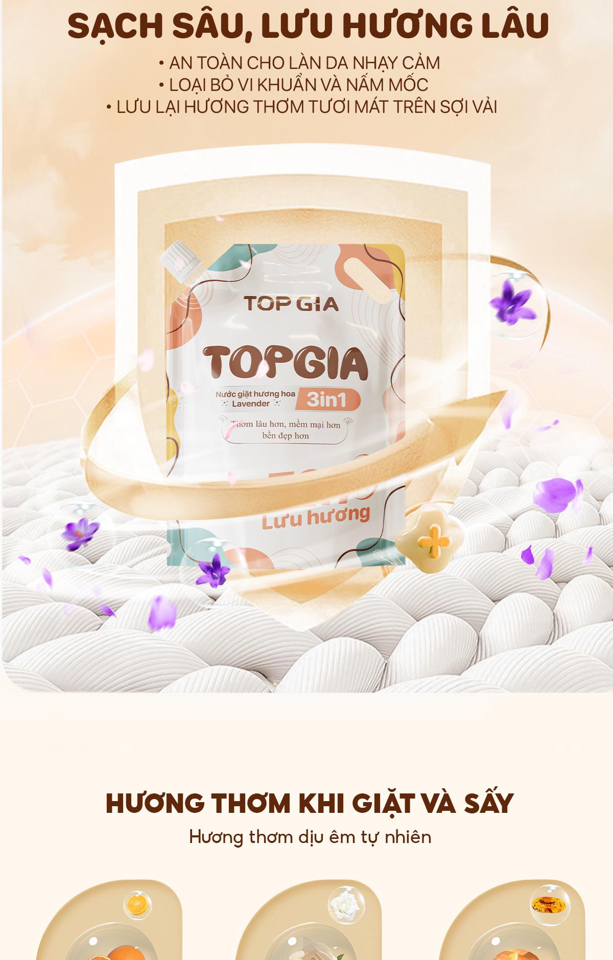 Nước Giặt MUA 1 TẶNG 1 TopGia 3in1, Lavender,Hoa Hồng,Dịu Nhẹ Sạch Vết Bẩn, Lưu Hương