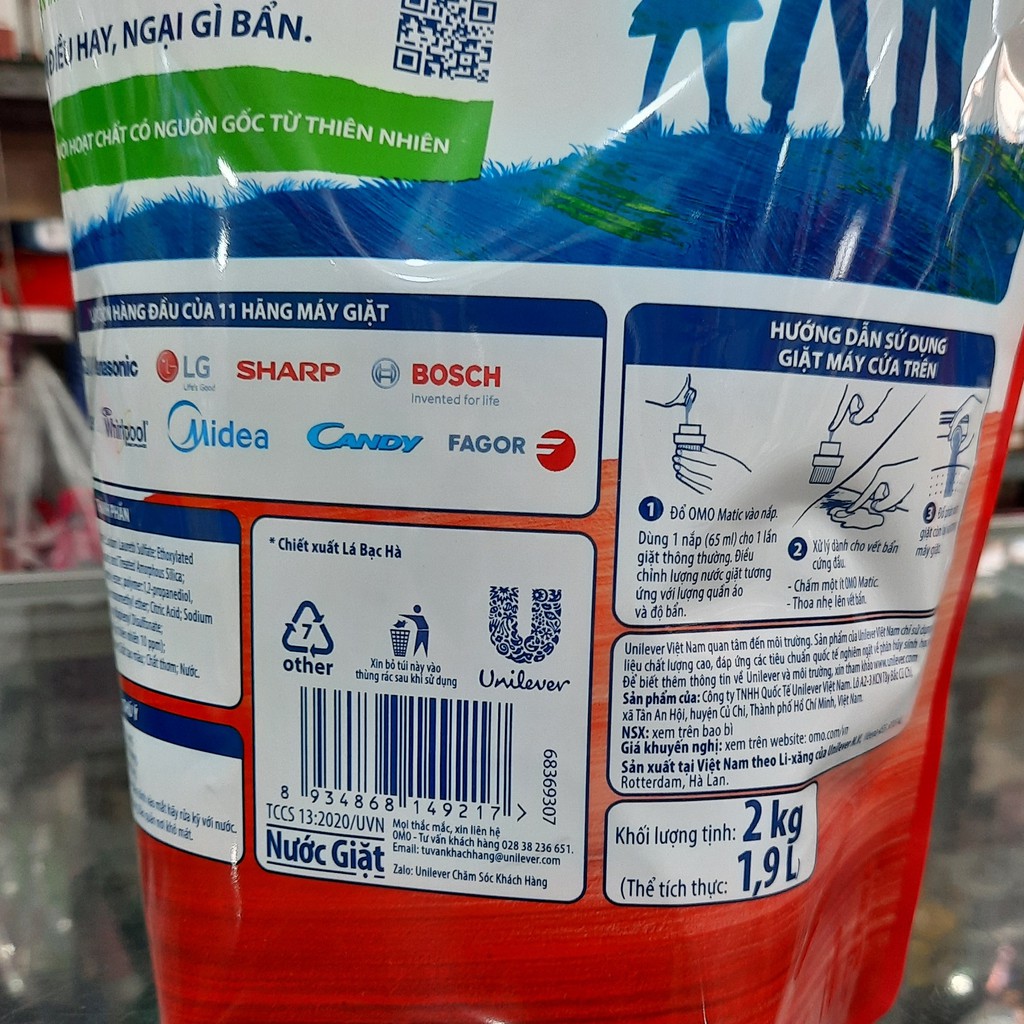 Nhà cửa & Đời sống > Dụng cụ chăm sóc nhà cửa > Phụ kiện giặt là > Nước giặt || Nước giặt OMO Matic Comfort tinh dầu thơm túi 2.0kg (1.9 lít)