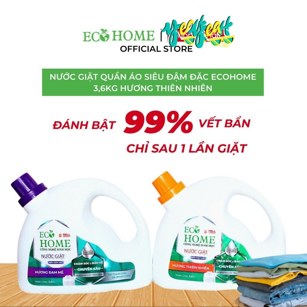 Nước Giặt Quần Áo Siêu Đậm Đặc ECOHOME 3,6Kg Hương Thiên Nhiên