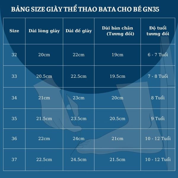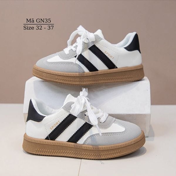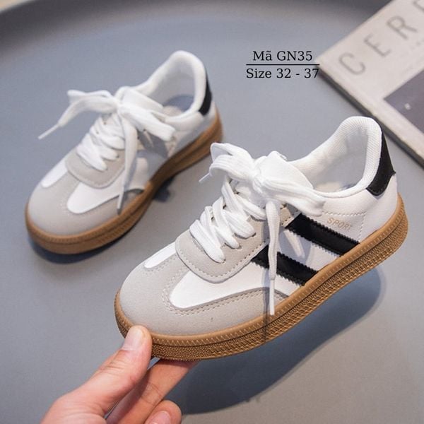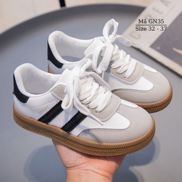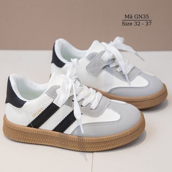 Giày thể thao trẻ em GN35 là lựa chọn hoàn hảo cho bé trai và bé gái từ 6–12 tuổi với thiết kế năng động, nhẹ êm và thời trang. Chất liệu da PU mềm mại kết hợp đế cao su dẻo đàn hồi giúp bé di chuyển thoải mái, bám tốt và chống trơn trượt khi đi học hay vui chơi. Form giày thể thao học sinh kiểu bata cổ điển được thiết kế quai dán giấu trong, vừa dễ mang vừa giữ dáng đẹp. Mẫu giày này phù hợp làm giày đi học cho bé trai, giày đi học cho bé gái, giúp bé luôn gọn gàng, tự tin đến lớp hay ra ngoài. Với kiểu dáng giày thể thao bata cho bé basic, dễ phối cùng đồng phục hoặc trang phục thường ngày, GN35 mang đến sự tiện dụng, êm chân và bền đẹp – người bạn đồng hành lý tưởng cho mọi hoạt động của bé.