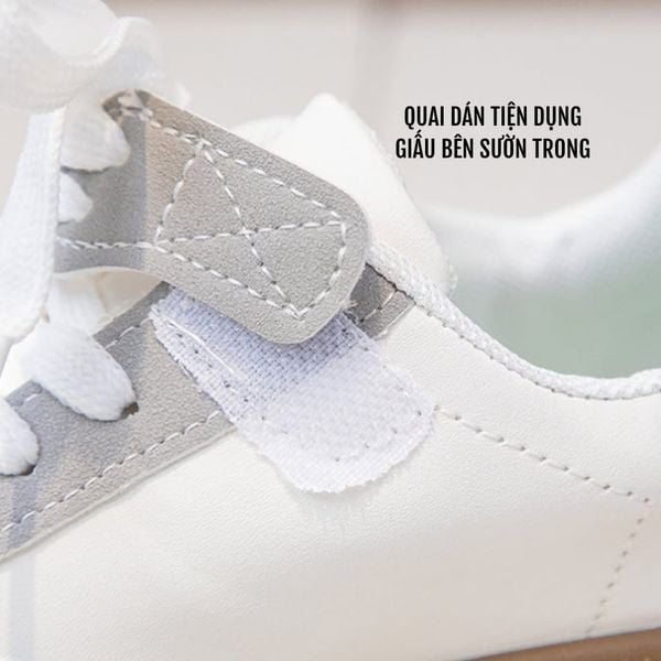 Thiết kế quai dán giấu bên trong, phía trên có dây cột giả giúp bé dễ mang, vẫn giữ dáng thời trang năng động.