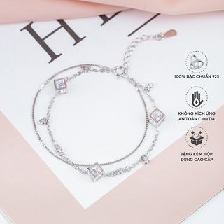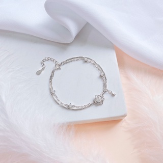 Lắc Tay Bạc Blue Peach 2 Dây Lá Đá LT303