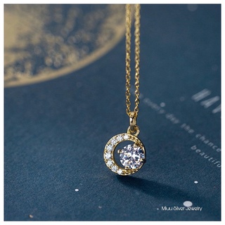 Vòng cổ nữ bạc 925 mạ vàng 14K Miuu Silver, dây chuyền nữ mặt trăng đính đá Mystery Moon