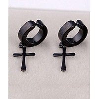 Bông tai kẹp thánh giá tòn ten BT380, Khuyên tai thánh giá kẹp thời trang unisex - Màu đen