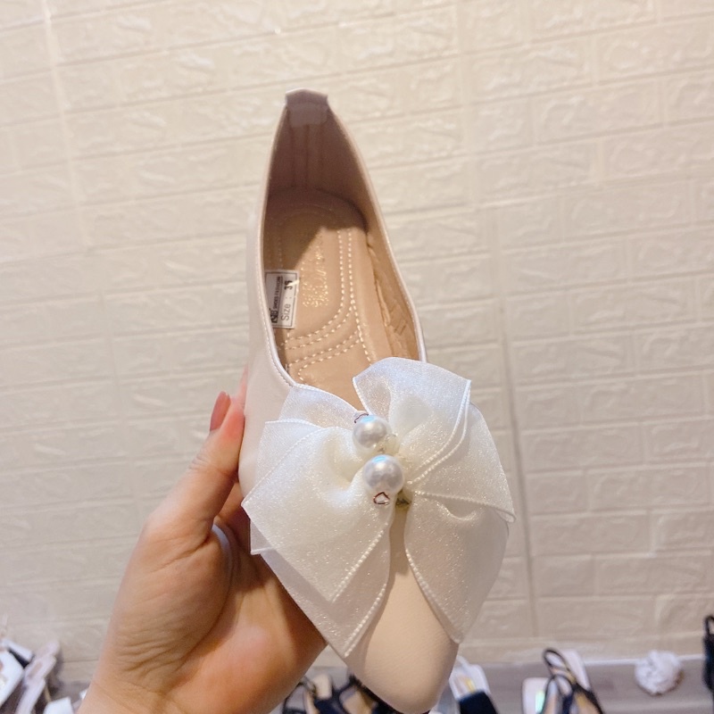 Giới thiệu Giày búp bê nữ đính ngọc đế mềm có thể gập da lì siêu xinh. ẢNH THẬT.