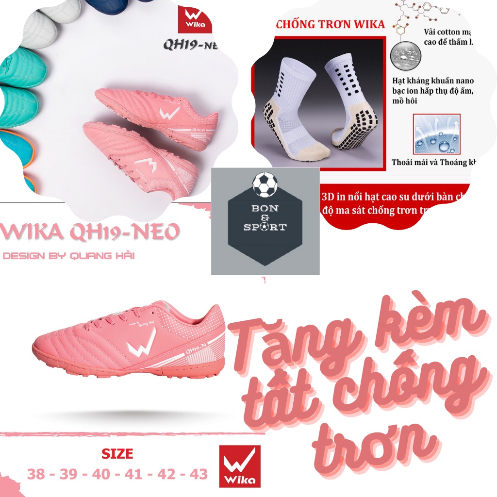 Giày bóng đá, giày đá banh WIKA QH19 NEO chính hãng cao cấp 👟 THÔNG TIN SẢN PHẨM: - Thương hiệu: Wika - Xuất xứ: Việt Nam - Màu sắc: Hồng, Navy, Xám, Xanh lam - Size: 38,39, 40, 41, 42, 43
