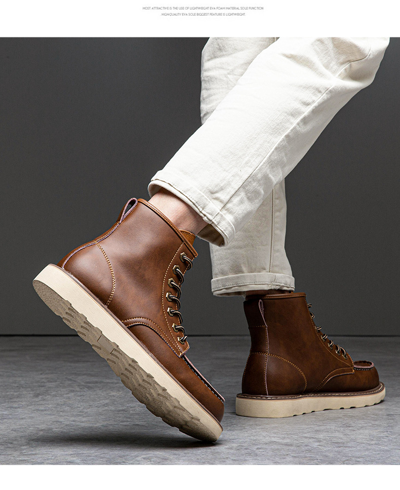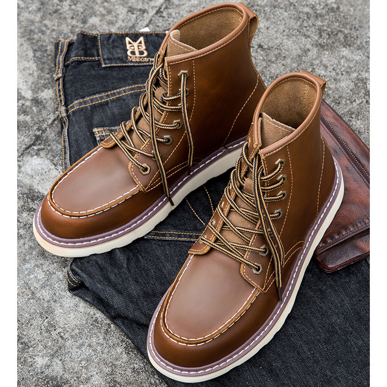 Giày boot (bốt) da bò, giày đốc cổ cao big size cỡ lớn (EU:46-46.5) cho nam chân to