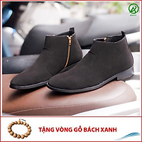 Giày Chelsea Boot Cổ Khóa Tiện Lợi Da Búc Đen Và Đế Được Khâu Chắc Chắn - CB521-bucdenkhoa(GB)- Kèm Vòng Gỗ Bách Xanh