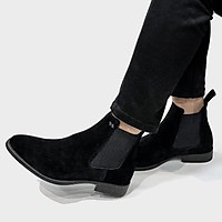 giày da nam Chealsea Boots classic cổ cao chun 2 bên da lộn đế cao su nguyên khối siêu êm, boot da nam thời trang
