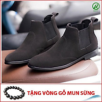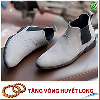 Giày Chelsea Boot Nam Cổ Chun Da Búc Xám Phong Cách Hàn Quốc - CB520-bucxamhun(HL)- Kèm Vòng Gỗ Huyết Long