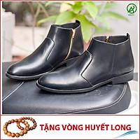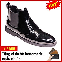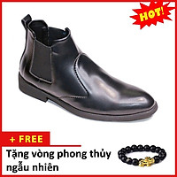 Giày Boot Nam Cổ Chun Da Bóng Màu Đen Sang Trọng Và Phong Cách - CB520-BONGCHUN(GB)-Kèm Vòng Gỗ Bách Xanh