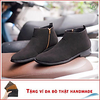 Giày Chelsea Boot Nam Cổ Khóa Da Nhám Màu Đen Cực Chất - CB521-nhamkhoa(HL)- Kèm Vòng Gỗ Huyết Long