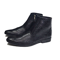 Giày Boot Nam Cổ Lửng Đế Khâu Da Trơn Màu Đen Cực Chất - M354-DEN(DD)- Kèm Lót Độn Đế Cao Su