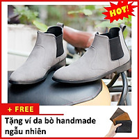 Giày Chelsea Boot Nam Cổ Chun Da Búc Xám Phong Cách Hàn Quốc - CB520-bucxamhun(VT)-Kèm Vòng tay Phong Thủy