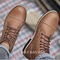 Giày Boot Nam Cổ Lửng Đế Khâu Da Trơn Màu Nâu Phong Cách - M354-NAU