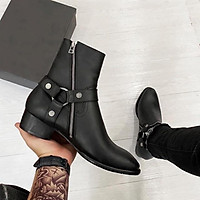 Harness Boots da lộn, khoá dọc, bốt quai xích