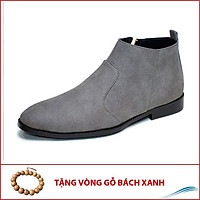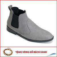 Giày Chelsea Boot Nam Cổ Chun Da Búc Xám Phong Cách Hàn Quốc - CB520-bucxamhun(GB)- Kèm Vòng Gỗ Bách Xanh