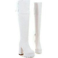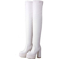 Boot ống cao ngang đùi gót vuông 12cm màu trắng GCC6102