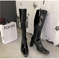 Bốt đùi gót vuông da lì cao 6cm sang chảnh