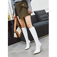 Boot ngang bắp chân màu trắng mũi nhọn THỜI THƯỢNG GBN4902