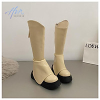 Boot dưới gối ôm chân mũi vuông màu kem sành điệu GCC10702