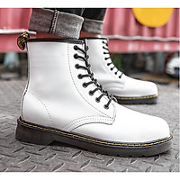 Bốt nữ cổ cao MARTIN chất da lì mềm, khóa sườn phong cách tuổi teen hai màu đen và đen đế nâu ban trung shopchuotxinh
