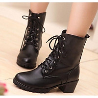 Bốt Dây Nữ Cổ Cao Đẹp Khóa Kéo Sườn Cao 5cm