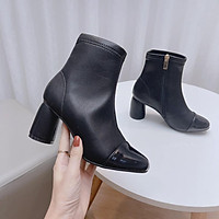 Giày Bốt Nữ Khóa Sau Đế Vuông Da Mềm Kiểu Dáng Phong Cách