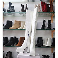 Boot đùi da bóng màu trắng MŨI VUÔNG gót 12cm thời thượng GCC12302
