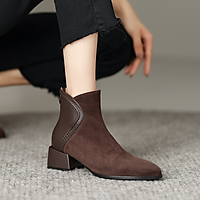 [ Size 35- 40] Boot nữ cổ ngắn da lộn màu NÂU ĐẤT đế thấp GBN11103