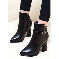 Giày Bốt Nữ Chỉ Thẳng Khóa Kéo Gót Vuông Siêu Đẹp