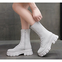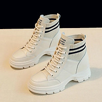 Giày bốt Martin cổ ngắn tăng chiều cao thời trang thu đông Anh Quốc mới 2021 cho nữ - Off white -0