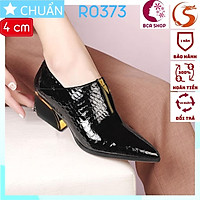 Giày bốt nữ cổ ngắn 4p RO373 ROSATA tại BCASHOP có khóa kéo sành điệu, kết hợp da vân bóng mềm đẳng cấp - màu đen