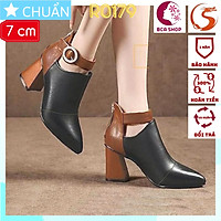 Giày boot bốt nữ cổ thấp 5 phân hàng hiệu rosata hai màu đen nâu ro224