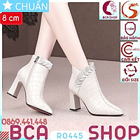 Giày boot bốt nữ cổ thấp 8 phân hàng hiệu rosata hai màu đen trắng ro445