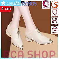 Giày bốt nữ cổ ngắn 4p RO305 ROSATA tại BCASHOP dây kéo phía trước, mũi giày và đế có gắn kim loại cách điệu - màu da nhạt