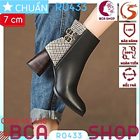 Giày bốt nữ cổ ngắn 7p RO433 ROSATA tại BCASHOP phần sau gót phối ca rô sành điệu và độc lạ - màu đen