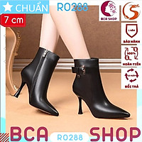 Giày bốt nữ cổ ngắn gót nhọn 7p RO288 ROSATA tại BCASHOP mũi nhọn, kết hợp kiểu mặt thắt lưng thời thượng - màu đen