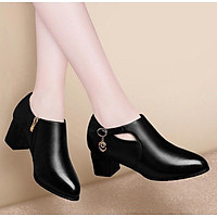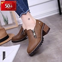 Giày boots cao gót đế vuông khóa kéo phía sau ( Size 35 - 40 )