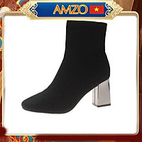 Boots Nữ, Giày Boot Nữ Cao Cổ Gót Vuông 6 Cm Chất Len Êm Hot Trend Cao Cấp AMNZO Hai Màu Đen-Kem Bảo Hành 12 Th